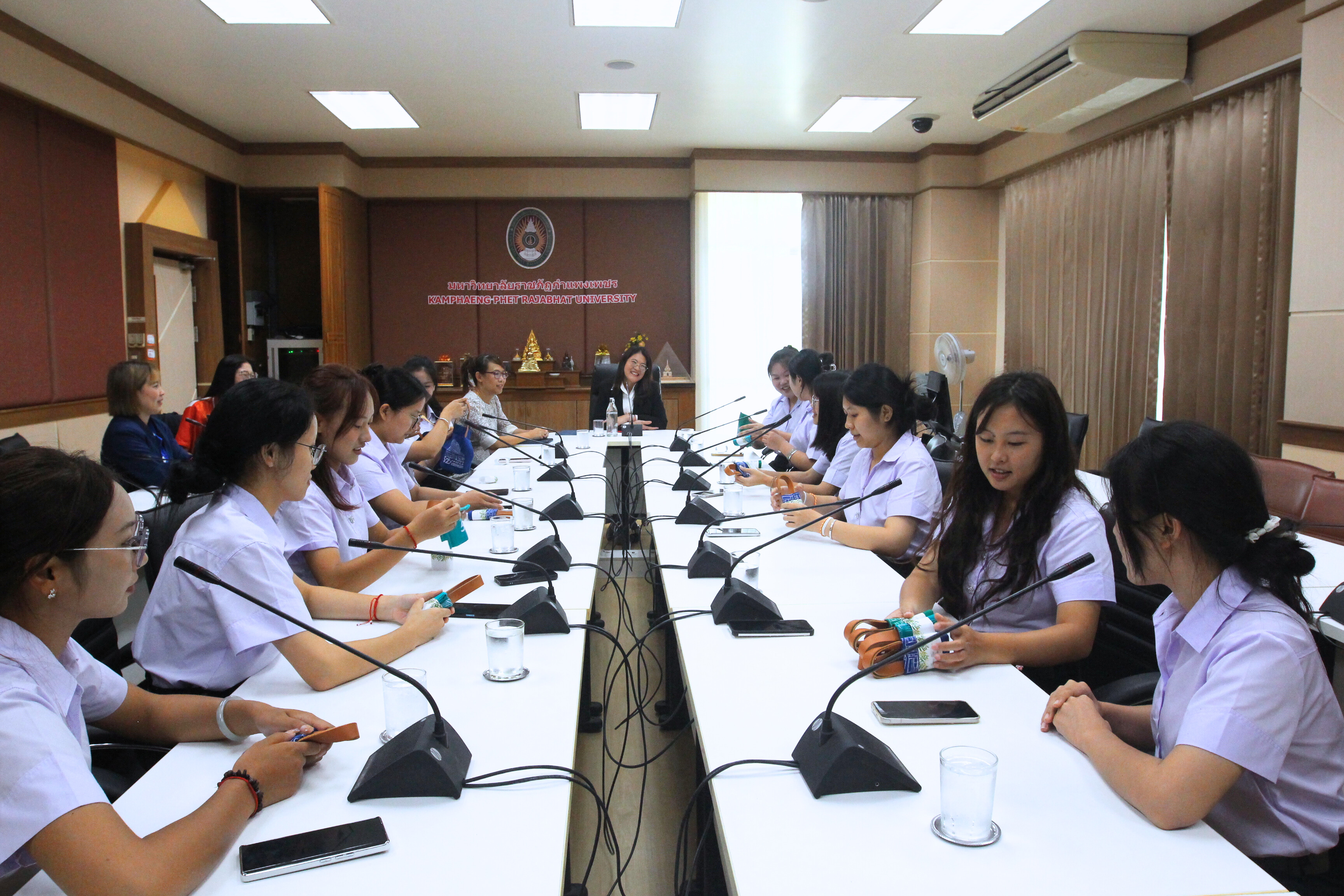 On August 4, 2025, Asst. Prof. Dr. Preeyanuch Prompasit, President of Kamphaeng Phet Rajabhat University, warmly welcomed the second cohort of Chinese international students from Dehong Teachers’ College, People’s Republic of China, under the academic cooperation program. She was joined by Asst. Prof. Dr. Khumphicha Tantisantisom, Vice President for Academic Affairs, at the Dhararat Meeting Room, Academic and Administration Building.