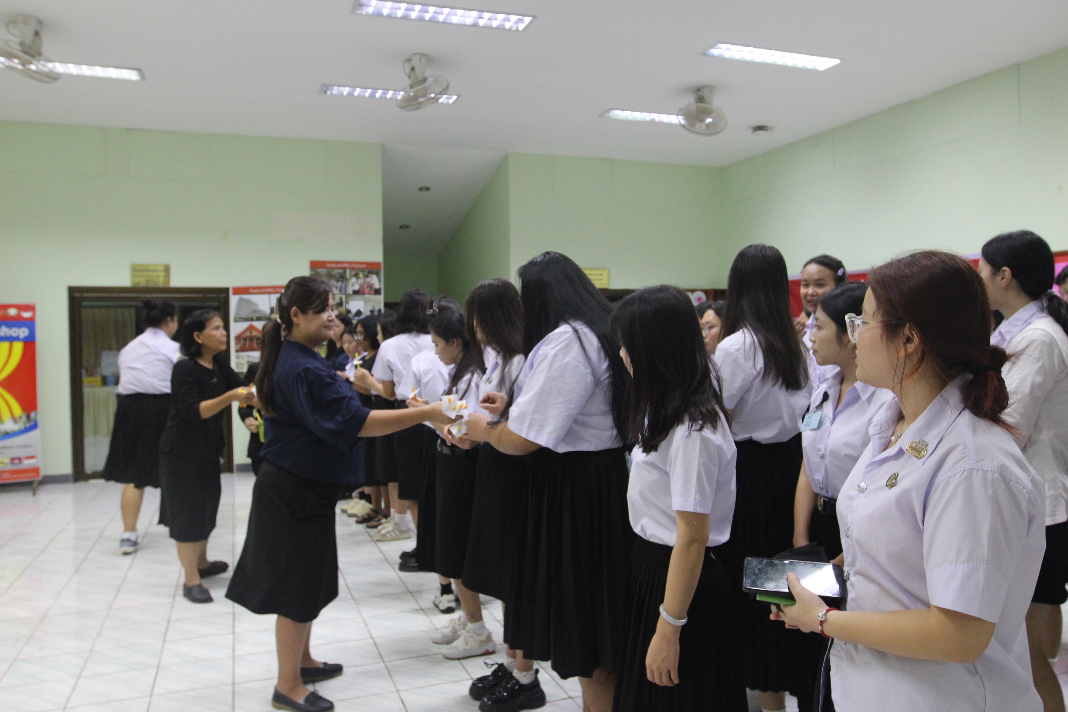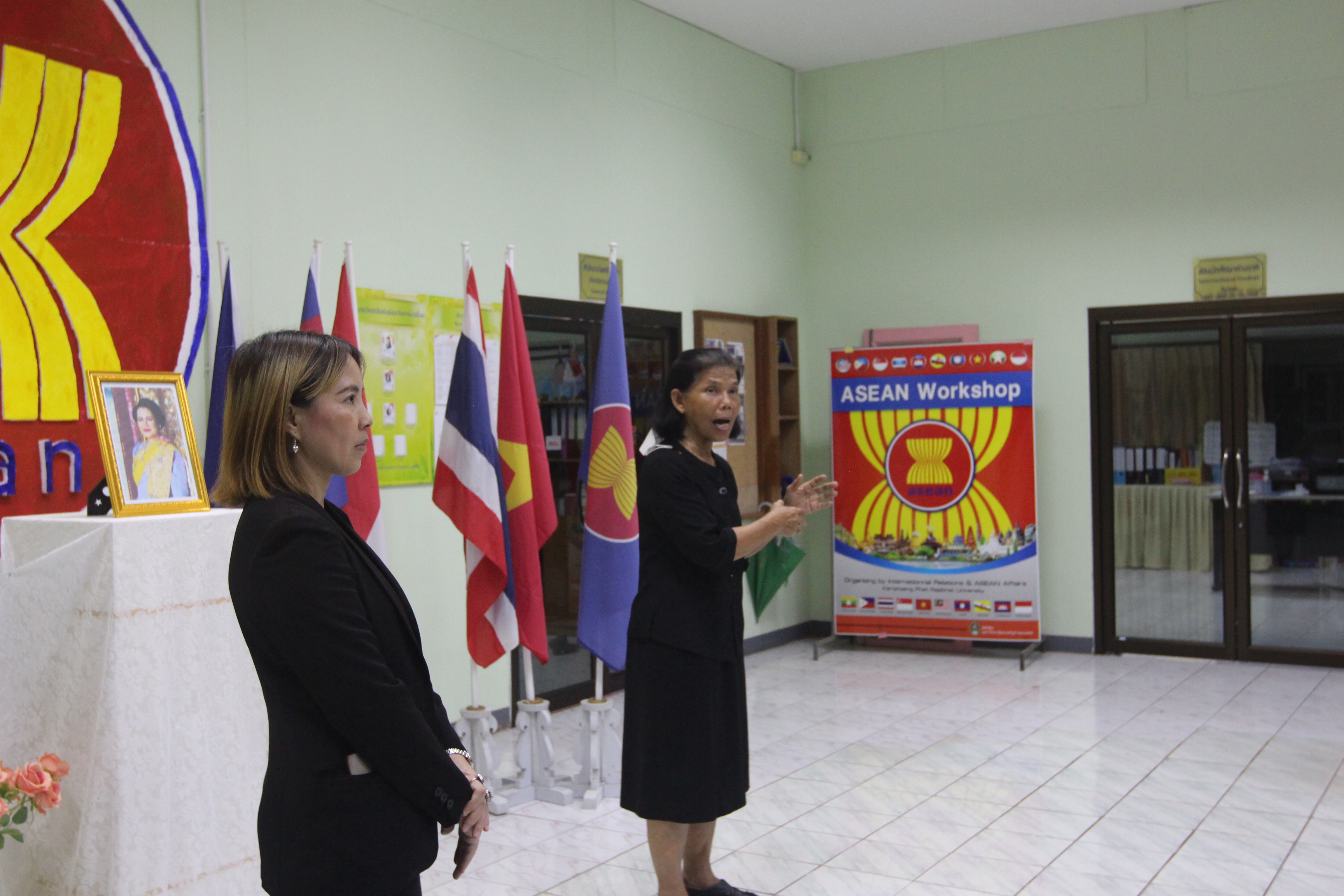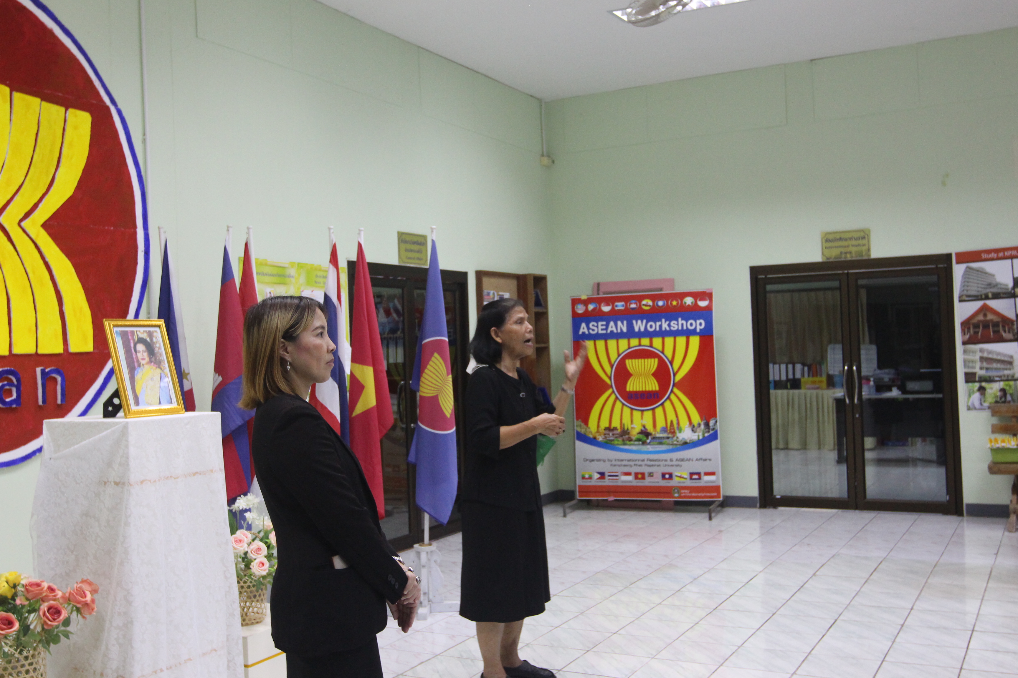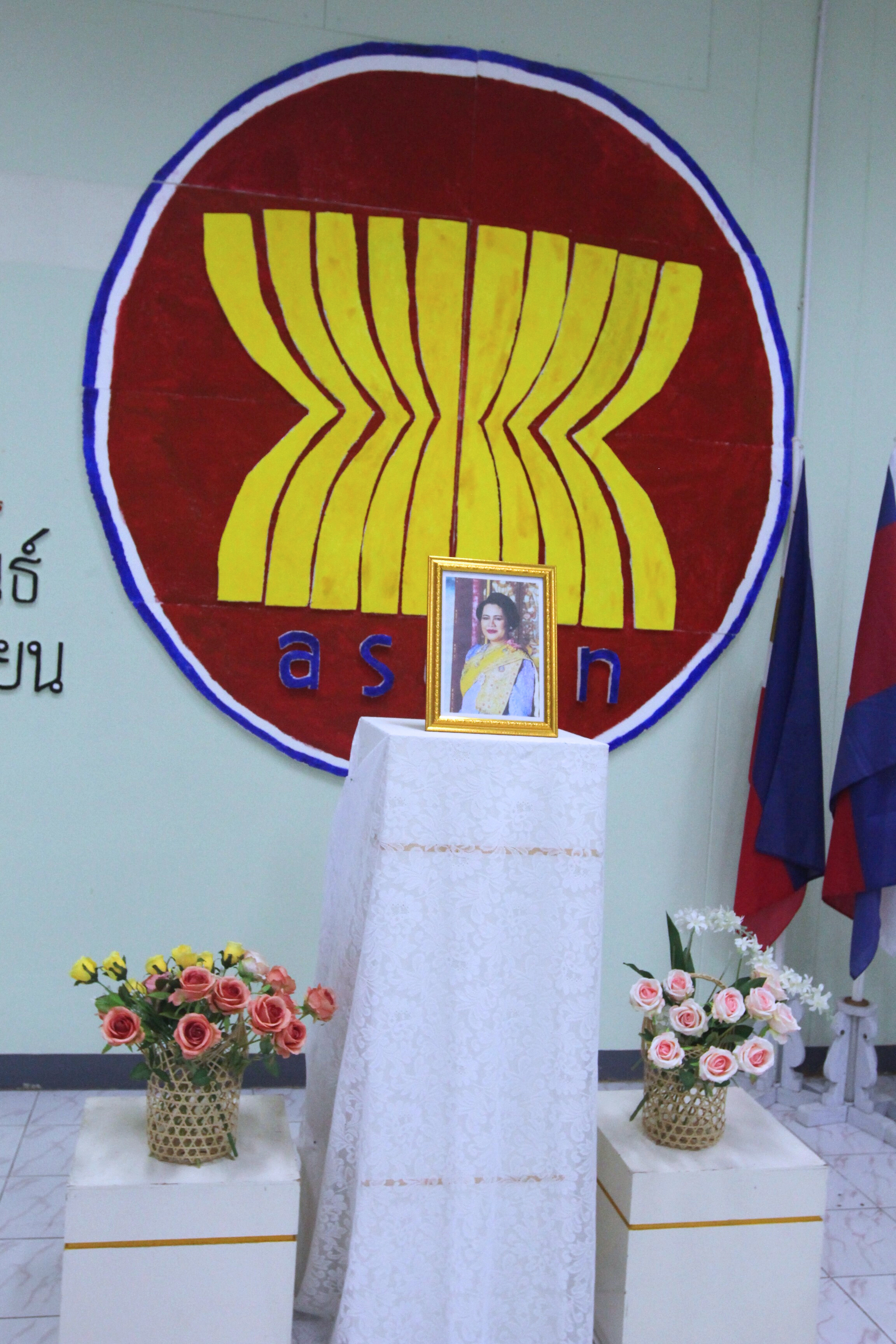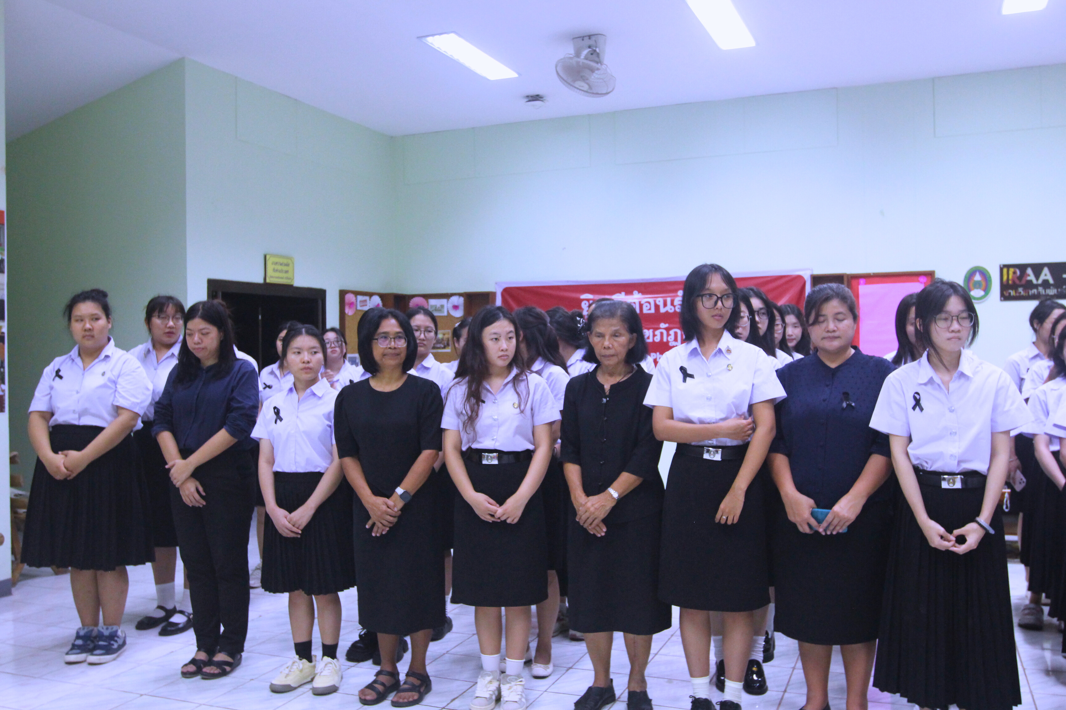 ในการนี้ รองศาสตราจารย์ ดร.สุนทรี ดวงทิพย์ อาจารย์โปรแกรมวิชาภาษาไทย ได้กล่าวถึงประวัติโดยย่อของสมเด็จพระนางเจ้าสิริกิติ์ พระบรมราชินีนาถ พระบรมราชชนนีพันปีหลวง ให้นักศึกษาต่างชาติทราบโดยสังเขป จากนั้น ผู้เข้าร่วมกิจกรรมได้ร่วมกันสงบนิ่งเพื่อไว้อาลัยแด่สมเด็จพระนางเจ้าสิริกิตต์ พระบรมราชินีนาถ พระบรมราชชนนีพันปีหลวง เป็นเวลา 93 วินาที ต่อจากนั้น รองศาสตราจารย์ ดร.สุนทรี ดวงทิพย์ ได้นำกล่าวถวายความจงรักภักดีและจุดเทียนน้อมรำลึกในพระมหากรุณาธิคุณที่พระองค์ท่านทรงเป็นแบบอย่างของพสกนิกรทั้งชาวไทยและชาวต่างชาติที่เข้ามาอาศัยอยู่ในราชอาณาจักรไทย ที่สำคัญ พระองค์ยังทรงทุ่มเทพระวรกายในการปฏิบัติพระราชกรณียกิจต่างๆ อย่างมากมาย เพื่อให้ประชาชนมีความสุข มีความเป็นอยู่ที่ดี และมีอาชีพที่สามารถเลี้ยงตนเองได้อย่างพอเพียง โดยเฉพาะโครงการศูนย์ศิลปาชีพ และโครงการบ้านเล็กในป่าใหญ่ ซึ่งประชาชนจังหวัดกำแพงเพชรถือเป็นหนึ่งในกลุ่มพสกนิกรชาวไทยที่ได้รับพระเมตตาจากพระองค์ท่านในการรับประชาชนชาวไทยภูเขาในพื้นที่อำเภอคลองลานเป็นสมาชิกศูนย์ศิลปาชีพผ่านการปักผ้าลวดลายต่างๆ ซึ่งได้โอบอุ้ม ช่วยเหลือชาวนาชาวไร่ในท้องถิ่นห่างไกลให้มีชีวิตที่ดีขึ้น สามารถส่งลูกหลานได้เรียนหนังสือและครอบครัวมีชีวิตที่ดี เป็นการขยายโอกาสและเพิ่มคุณภาพชีวิตให้แก่ราษฎร โดยพระองค์เคยกล่าวไว้ว่า